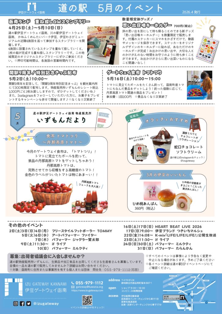 道の駅伊豆ゲートウェイ函南のイベント情報は「イベントカレンダー」をクリック