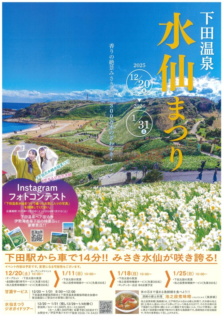香りの絶景みさき水仙 300万本のざわめき… 須崎半島の景勝地「爪木崎」には水仙の群生地があり、ピーク時には300万本もの水仙が甘い香りを漂わせ、ひと足早い春の訪れを感じることができます。 例年の最盛期は1月。その期間に合わせて水仙まつりが開催さ... -