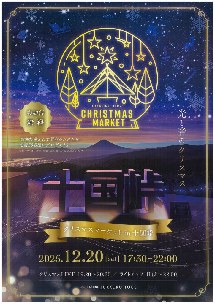 夜景と光の演出に包まれながら過ごす十国峠の特別なクリスマスをどうぞ☆ 山麓から山頂へ向かうケーブルカーが光とレーザーによる演出で非日常への入口となり、自然と調和するブルーの光で包まれた幻想的な夜の世界を演出します。 山頂展望台内1階にクリス... -