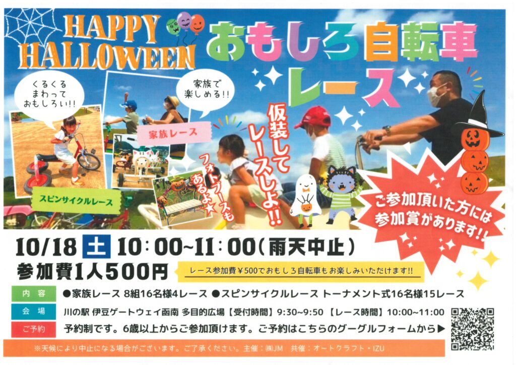 ハッピーハロウィン!川の駅伊豆ゲートウェイ函南ではおもしろ自転車レース開催いたします!!