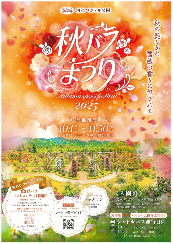2025年「秋バラまつり」は、10月1日~11月30日の2か月間。