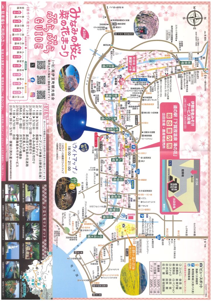 イベント期間中は、出店やお花見人力車・ガラポン抽選会・みなみの夜桜と竹灯り・夜桜ライトアップ・菜の花ドア・菜の花迷路をお楽しみいただけます。