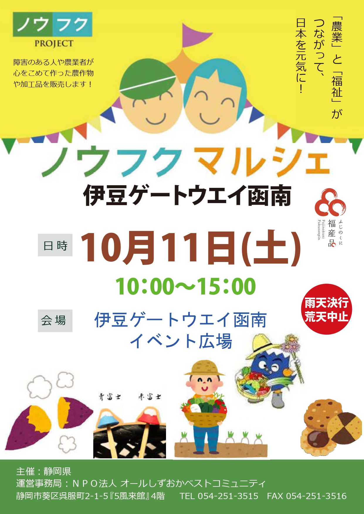 静岡県では、農業分野での担い手不足解消と福祉事業所で働く方達のエ賃を向上させるため、農業と福祉事業所との連携を推進しており、取り組みによって生産された野菜や加工品を販売するイベントを県内各地で行っています。