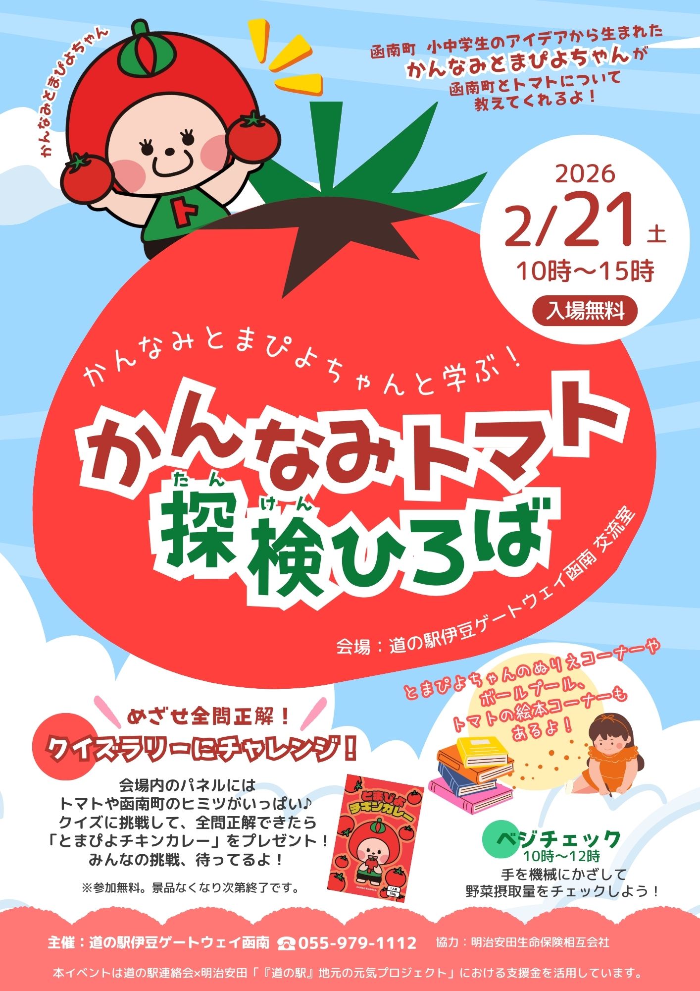 函南町のトマトに関するパネル展示を見て学んで、クイズラリーに挑戦しよう♪正解したお子様には11月に新発売した「とまぴよチキンカレー」をプレゼント!